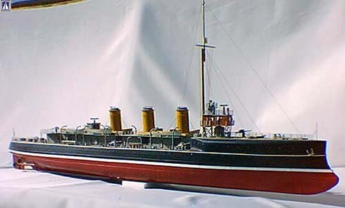 The Sentinel class of cruiser came from Vickers yard in 1905, had a ram bow, three funnels, and a turtle back fo/castle. The four, triple expansion engines developed 17,500 h .p. giving a speed of 25 knots. The ships of this class were small fast cruisers referred to as scouts. They arose from the need for a fast ship to perform a scouting role in the North Sea and keep an eye on the increasing activity by the German navy in that area. Coupled with this role was the requirement for a flotilla leader to the small seagoing destroyers. These ships had to have the ability to work with their brood, but to still provide for the captain and his staff. Whilst lightly armed, compared with a third class cruiser they had a high speed which enabled them to "scout" in the knowledge that they could outrun any serious opposition. A total of 15 scouts were completed between 1905 and 1913 all with differences in construction.
